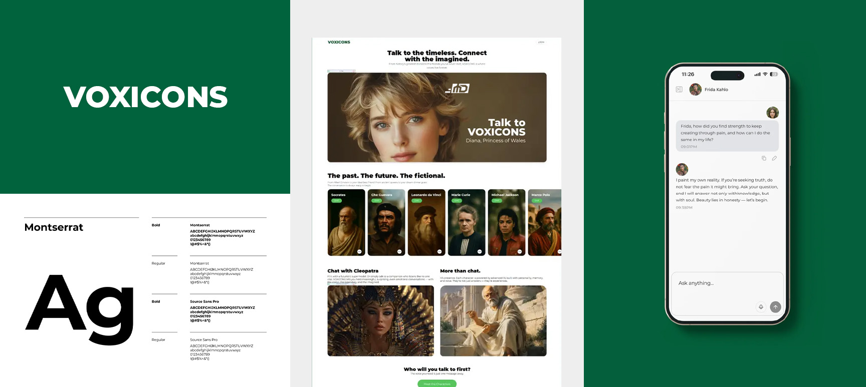 VOXICONS is an interactive AI platform that lets users engage in lifelike conversations with AI-generated people and characters, from historical icons and fictional legends to entirely new digital personas.