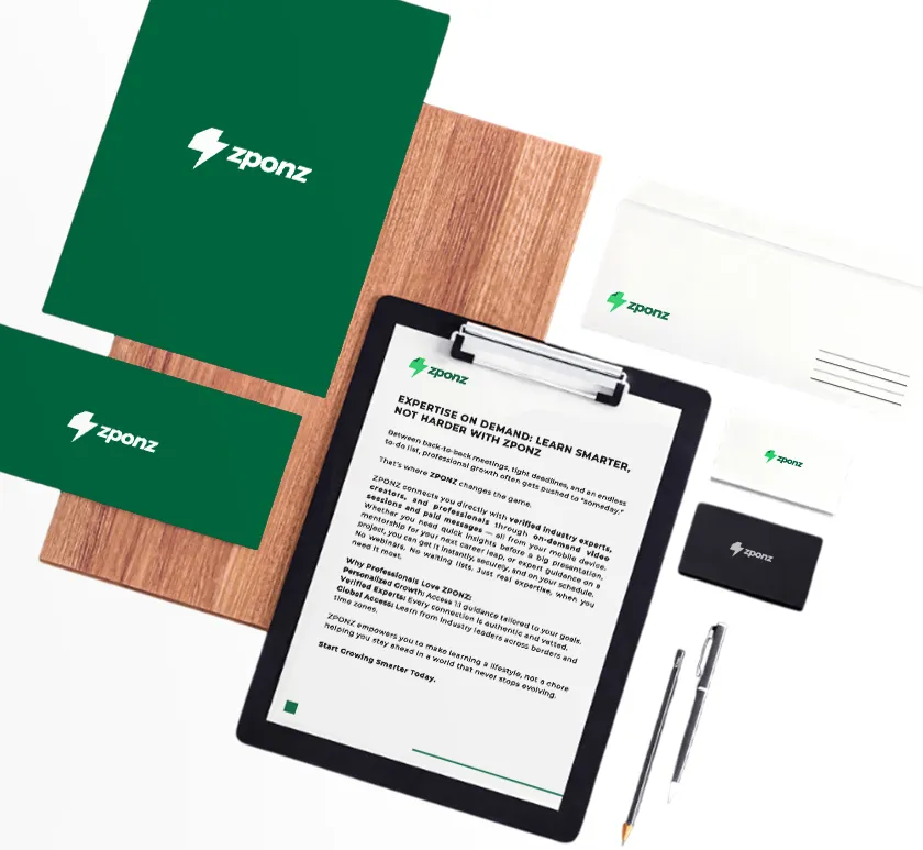Visually, we developed a bold yet approachable brand identity, anchored by a distinctive checkmark icon a universal symbol of authenticity, accessibility, and confidence. The design language blends premium tech aesthetics with a human-centered warmth, positioning ZPONZ as both credible and relatable.